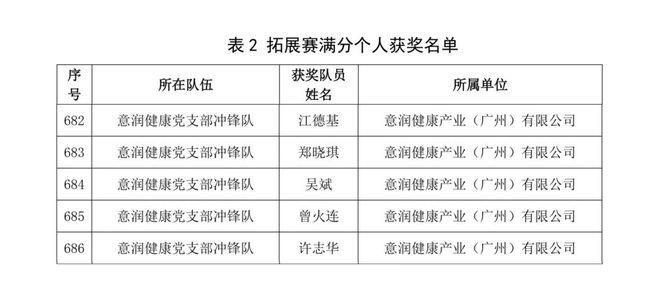 在个人奖项评选中,意润健康党支部冲锋队的队长吴斌,副队长江德基,队员曾火连、许志华、郑晓琪等5名参赛选手均表现突出。他们始终以高标准要求自己,不仅每日坚持完成万步健走目标,还积极参与大赛中的健康知识学习、线上互动等环节,以扎实的行动力和良好的综合表现,成功斩获“拓展赛满分个人”称号,成为公司员工践行健康生活方式的优秀典范。