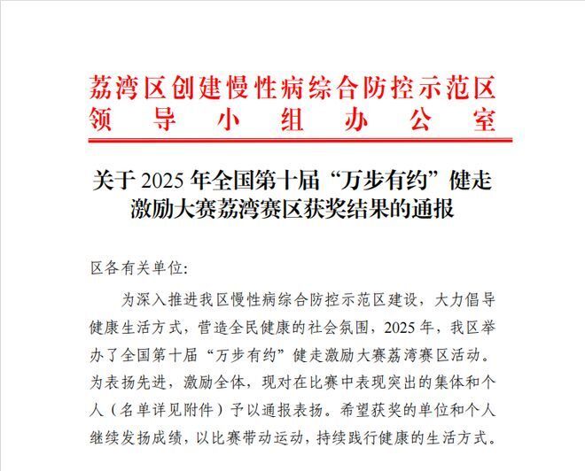 意润健康党支部冲锋队 2025 年全国第十届 “万步有约” 健走激励大赛斩获团队与个人荣誉近日,2025年全国第十届“万步有约”健走激励大赛荔湾赛区获奖结果由广州市荔湾区卫健局正式公布。意润健康(广州)有限公司党支部冲锋队凭借出色表现,斩获“拓展赛满分团队”荣誉,同时,队内5名成员均荣获“拓展赛满分个人”称号。作为本次大赛荔湾赛区唯一一家获奖的医疗健康领域企业团队,其成绩充分展现了意润健康积极践行健康生活方式、凝聚团队力量的良好风貌,更以行业标杆姿态诠释了医疗健康从业者对健康理念的躬身践行。